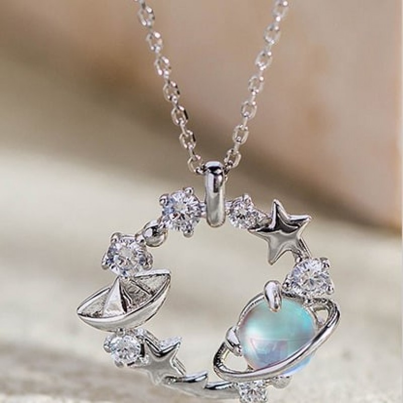 Fanci Fan Qi серебряные украшения Lianlian Planet голубое стекло камень ожерелье женский 925 серебро планета ключица цепь кулон