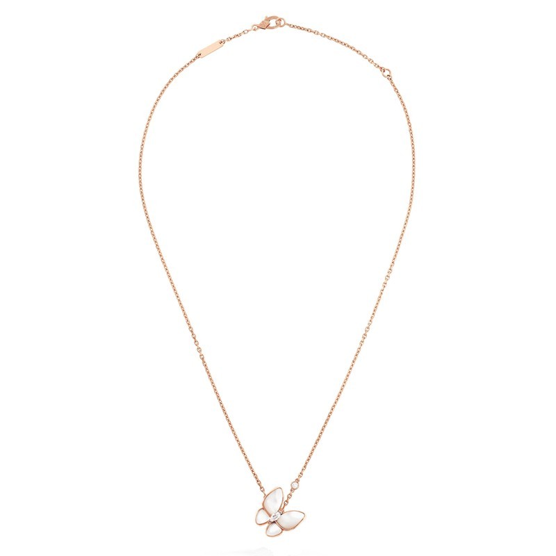Van Cleef & Arpels Classic Deux Papillons Women's White Mother of Pearl Two Butterfly Necklace VCARO8FO00